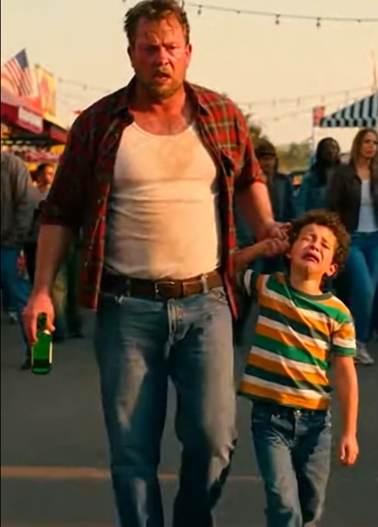 Near the ticket booth, a man grips a young boy by the ear. Hard. The boy can’t be more than eight—freckles across his cheeks, a baseball cap slipping over wide, frightened eyes. His face twists in pain as he stumbles forward.