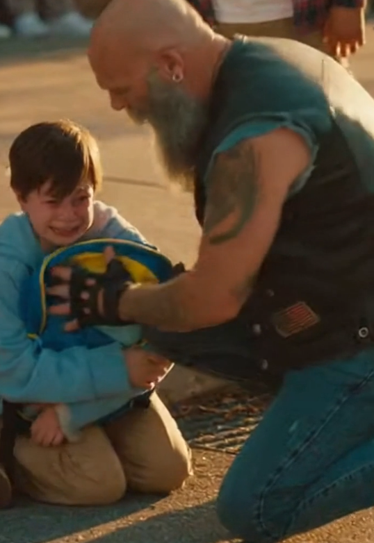 The rider stepped off slowly. Leather vest. Heavy boots. Broad shoulders. A beard with streaks of gray. The kind of man people make assumptions about before he ever opens his mouth.