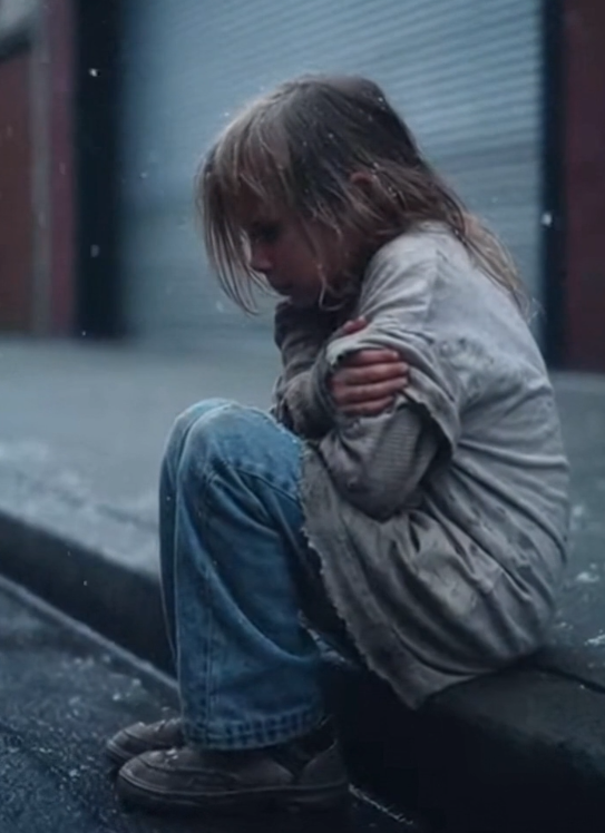 On a quiet street corner, under a dim bus stop light, a little girl stood alone.