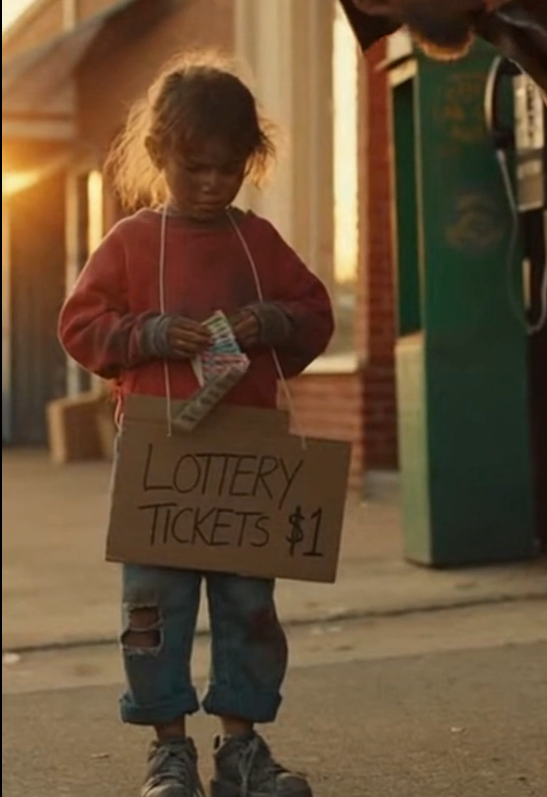 Her clothes were worn, stained with dust and time. Her shoes didn’t quite fit, and her hair fell unevenly around her face. In her small hands, she held a stack of lottery tickets—her quiet attempt to survive in a world that barely noticed her.