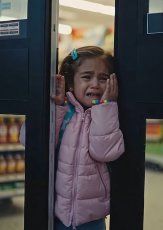 The girl looked up at him, fear written across her face. You could almost feel her panic—like a storm trapped in a small body.