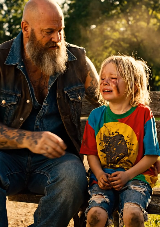 The biker sat beside him, not too close, just enough to remind him he wasn’t alone.