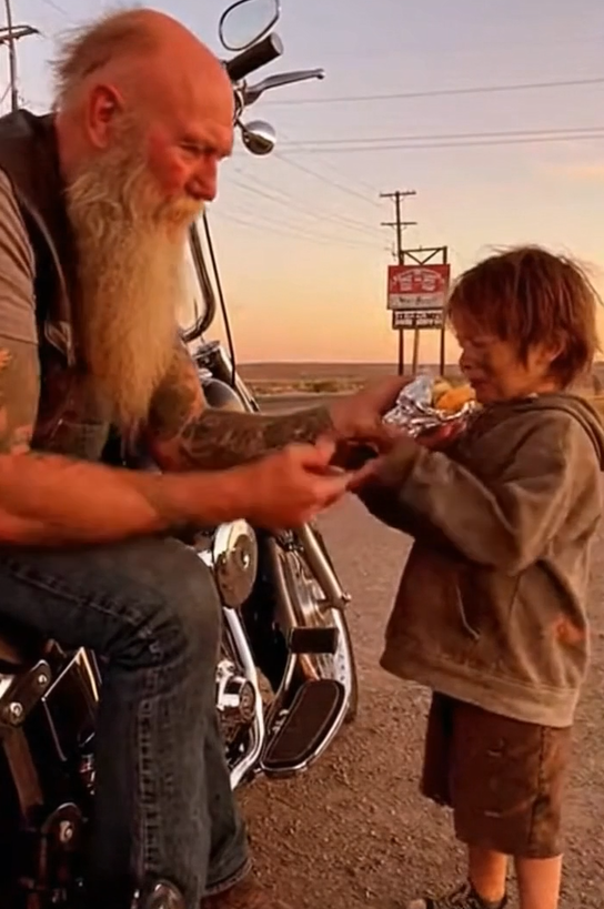 The old biker didn’t save the world. He didn’t fix every problem. He shared a meal, a little money, and a moment of dignity.