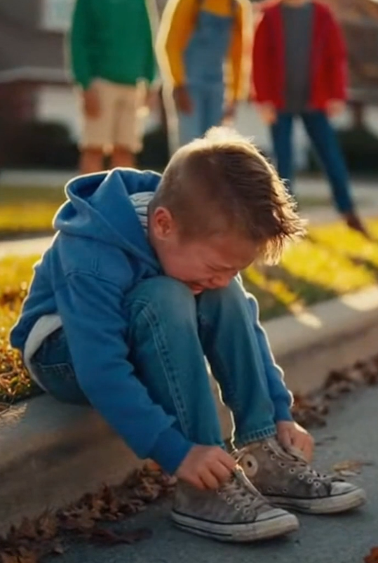 Not loudly. Not all at once. Just enough for the boy to hear it and know it was meant for him. The scuffed toes. The peeling sides. Laces knotted one too many times to hide how worn they were. He tucked his feet under the bench, hoping the concrete might swallow them whole.