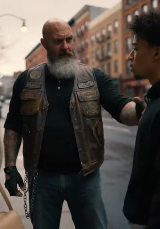 The biker took one step closer and stopped, placing himself squarely between the woman and the man. His posture said everything. “It is when someone’s getting hurt.”