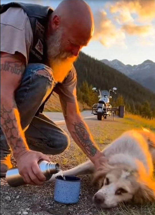 The biker shut off the engine and knelt a few feet away. No sudden movements. No reaching out. Just presence. Animals understand patience better than most people do.