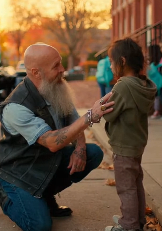 Sometimes they ride motorcycles, stop for a moment, and give a child something simple—a reason to smile. 🏍️