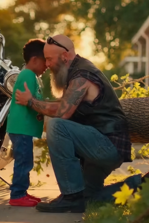 In one powerful motion, the biker lunged forward, grabbing the child by the arm and pulling him away with everything he had.