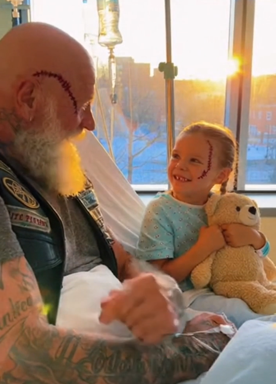 In a quiet hospital hallway, a tough American biker turned a moment of fear into one of connection by sharing the one thing he once tried to hide. By showing his surgery scar to a little girl fresh from brain surgery, he reminded her—and everyone watching—that survival carries its own strength. Scars don’t have to make us feel alone. Sometimes, they become bridges. And sometimes, the road brings exactly the person you need, just to remind you that you’re not walking it alone.