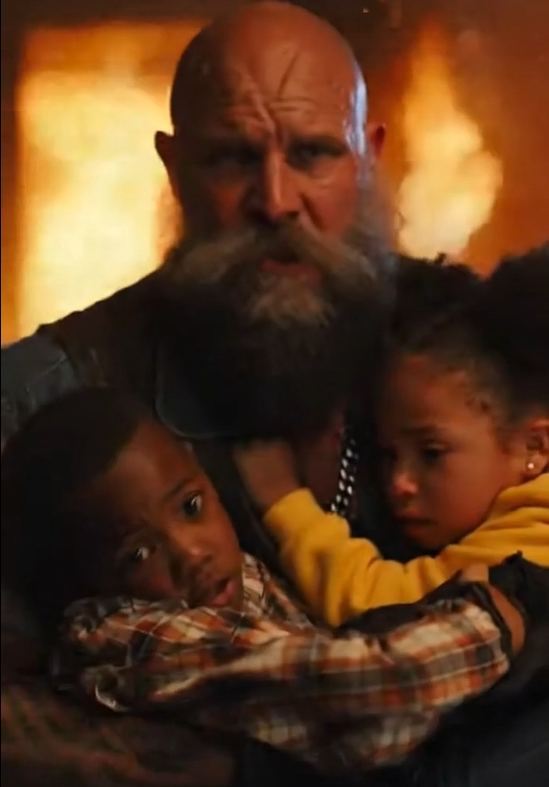 He took off his jacket and wrapped it around the smaller child, shielding them from the heat and smoke. He lifted both kids—one in each arm—and turned back toward the stairwell as flames licked the walls behind him.