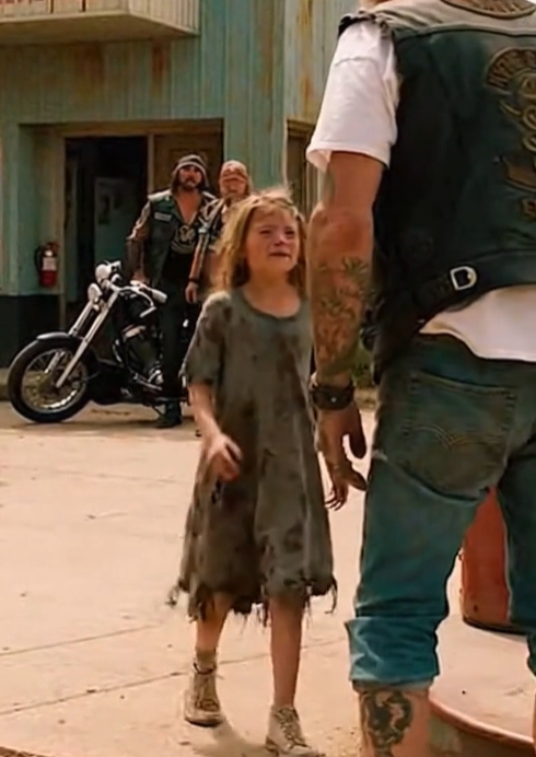 The biker positioned himself between the girl and the man. Boots planted. Arms relaxed but crossed. His posture said everything without saying anything at all.