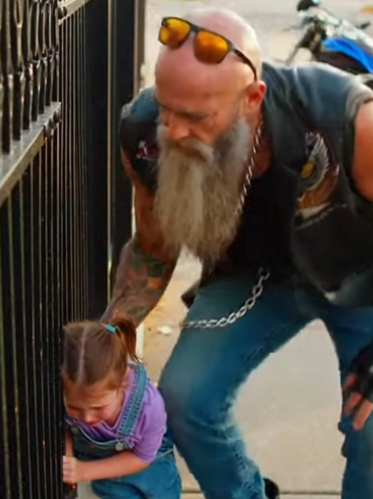 Steel had been riding home after meeting with a few club brothers across town. The ride through the quiet neighborhood had been peaceful—until he noticed something unusual at the park.