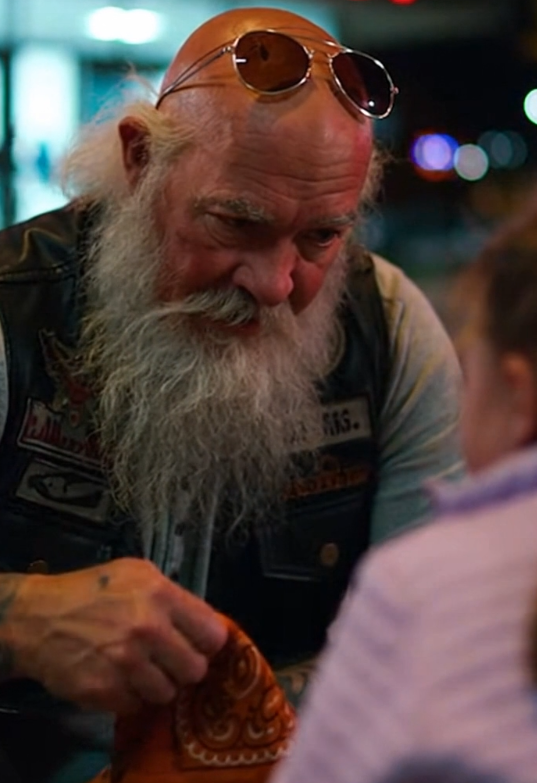 He had a thick gray beard, worn leather boots, and a road-worn vest decorated with patches from rides across different states. The kind of rider who had clearly spent years traveling long highways and backcountry roads.