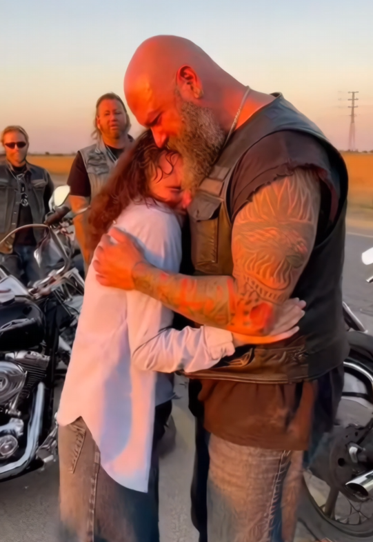 Jake wrapped his arms around her, steadying her. His crew stood in the background, watching with respect, allowing the moment to unfold. This wasn’t about being tough—it was about making sure she felt safe again.