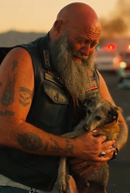 “Hang in there, buddy,” the biker whispered.