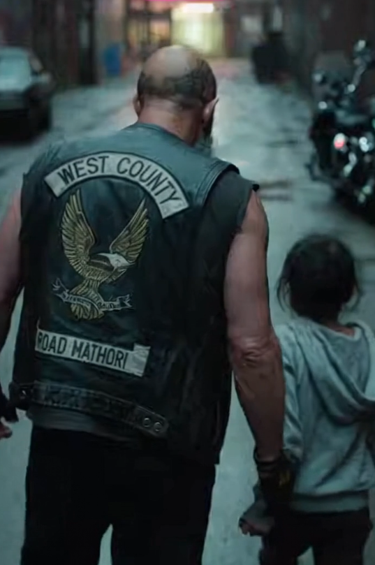 The biker’s boots hit the pavement with heavy, deliberate steps as he approached.