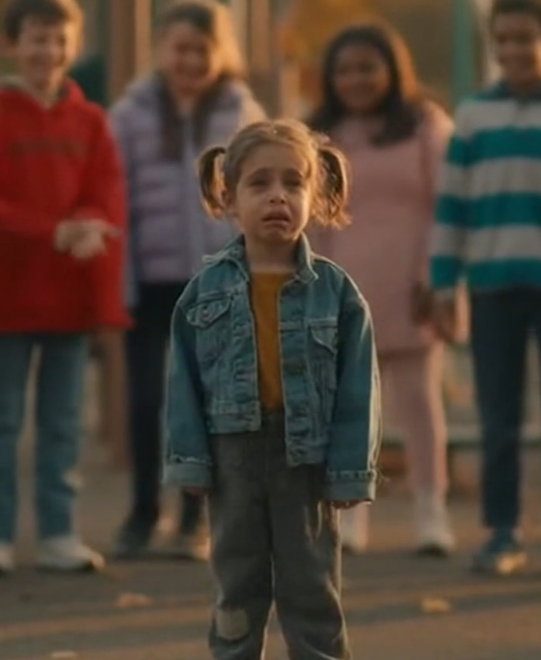 Near the bike rack stood a small girl, no more than ten years old. Her clothes were worn thin, sleeves too short, shoes held together by stubborn glue and determination. She hugged a secondhand backpack to her chest like a shield, as if it were the only thing standing between her and the world.
