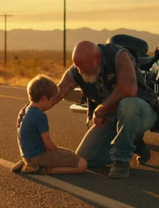 The bikers didn’t raise their voices. They didn’t demand explanations. One of them took off his gloves slowly and knelt in front of the boy, lowering himself until they were eye to eye.