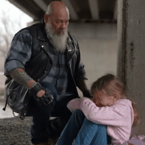 American Biker Finds Frightened Girl Hiding Under a Bridge and Leads Her to Safety