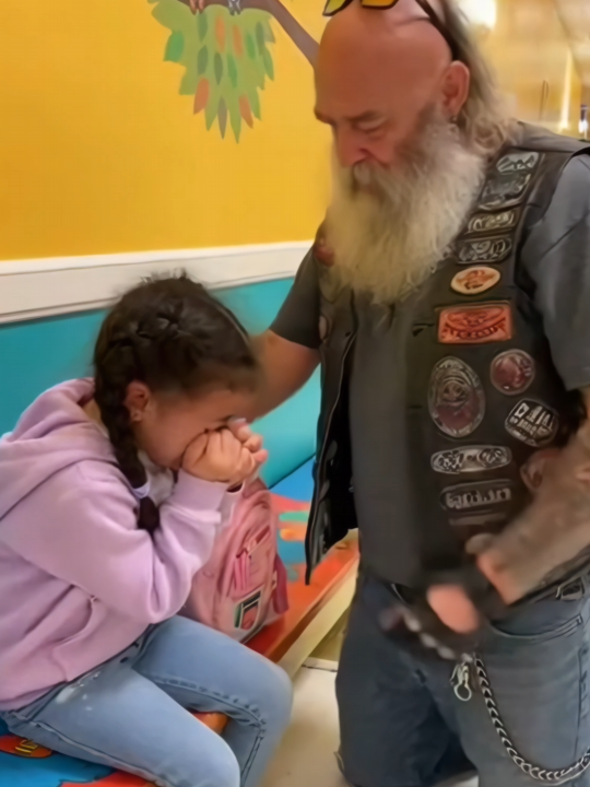 The girl sat in a plastic chair, feet dangling, not quite reaching the floor. The biker sat beside her. He didn’t scroll his phone. Didn’t pace. Didn’t fill the silence with promises he couldn’t guarantee.