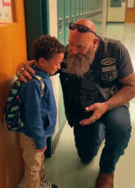 A boy felt too small to enter his classroom because laughter had chipped away at his confidence. An older biker noticed. He didn’t escalate. He didn’t perform. He simply walked beside the child and stayed long enough for the moment to reset.