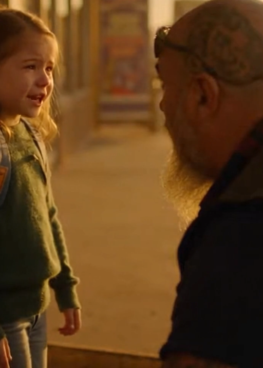 He crouched down so they were eye-level. Not invading her space. Just lowering himself so she didn’t have to look up at another adult towering over her.