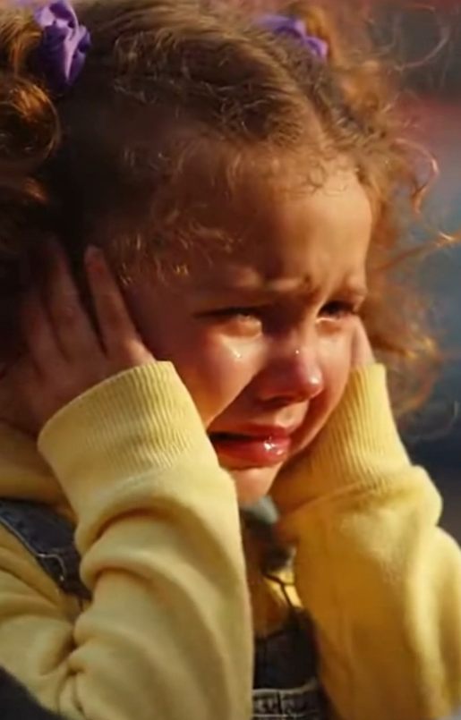 She stood off to the side, away from the crowd. Small hands pressed tightly over her ears. Eyes fixed on the ground like she was trying to disappear.