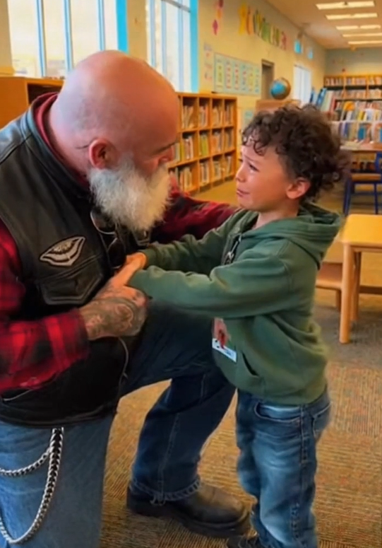 The biker pulled his motorcycle up to the curb the same way he always did—slow, steady, mindful not to startle the kid standing nearby. The engine cooled with a soft tick as the boy stared, wide-eyed, fingers tapping a game controller he carried everywhere, even outside. Screens had done most of the talking in his life. They were familiar. Predictable. Safe.