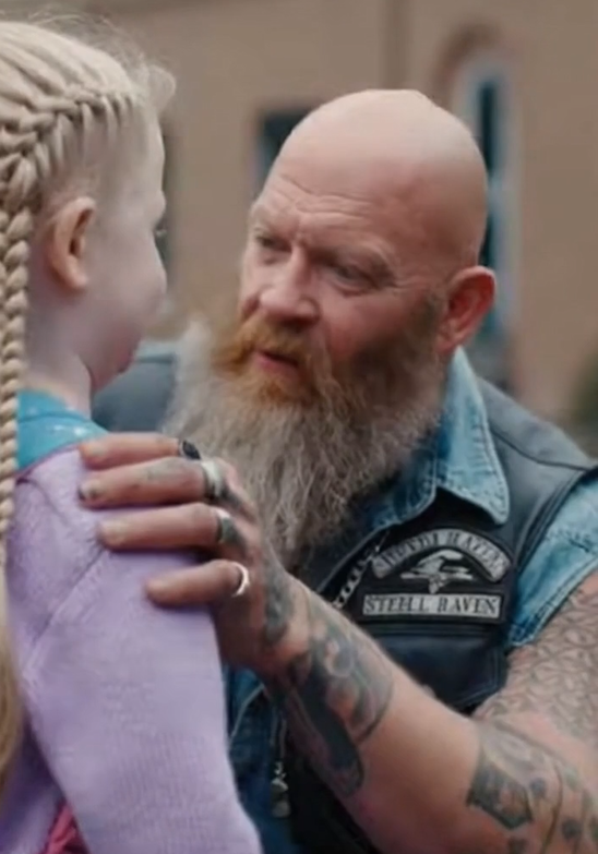 From across the school parking lot came a low rumble—the unmistakable growl of a motorcycle. Heads turned as a tall biker rolled into view, the sunlight reflecting off his leather jacket and glinting chains. He slowed as he saw the scene unfold: a young girl cornered by mockery and judgment. Something stirred inside him—a protective instinct he couldn’t ignore.