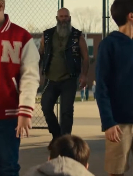 Leather jacket. Helmet in one hand. Calm posture, but unmistakable presence. He didn’t shout. He didn’t hurry. He took in the scene in a single glance—the boy on the ground, the smirks that hadn’t quite faded, the way everyone suddenly pretended they hadn’t seen anything.