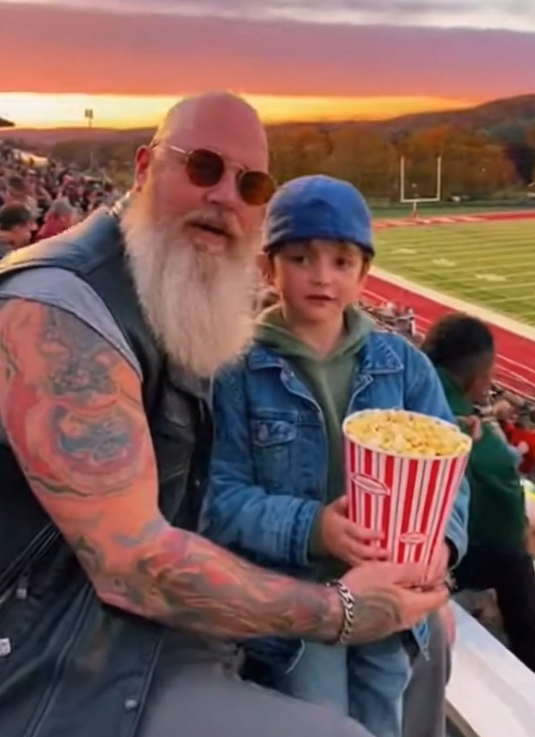 The biker helped the boy hop down and adjusted the oversized jersey hanging loosely from his shoulders. It wasn’t brand new. It had been borrowed, passed down, and washed more times than anyone could count. But today, it felt important.