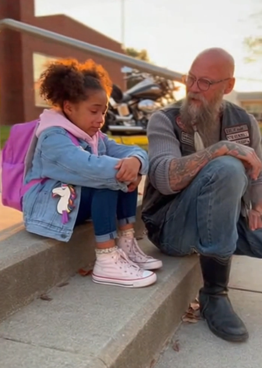 That afternoon didn’t rewrite the girl’s life. It didn’t solve whatever made her cry on those school steps. But it gave her something steady to stand on in the middle of a hard day.