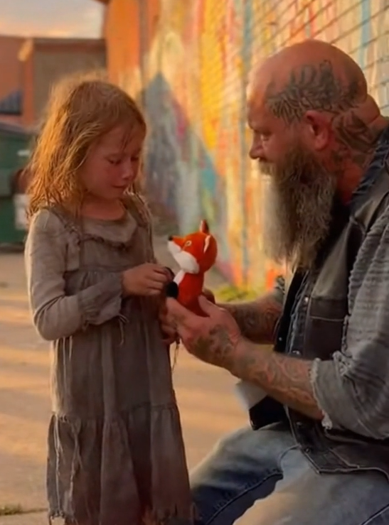 The little girl sat quietly on the front steps of her apartment building, legs pulled close, watching the world move past her. Other kids nearby laughed, chased each other, and dragged toys across the sidewalk—plastic cars with missing wheels, dolls missing arms, treasures that came and went. Lucy watched them with calm eyes. She had learned not to ask for things she knew wouldn’t come.