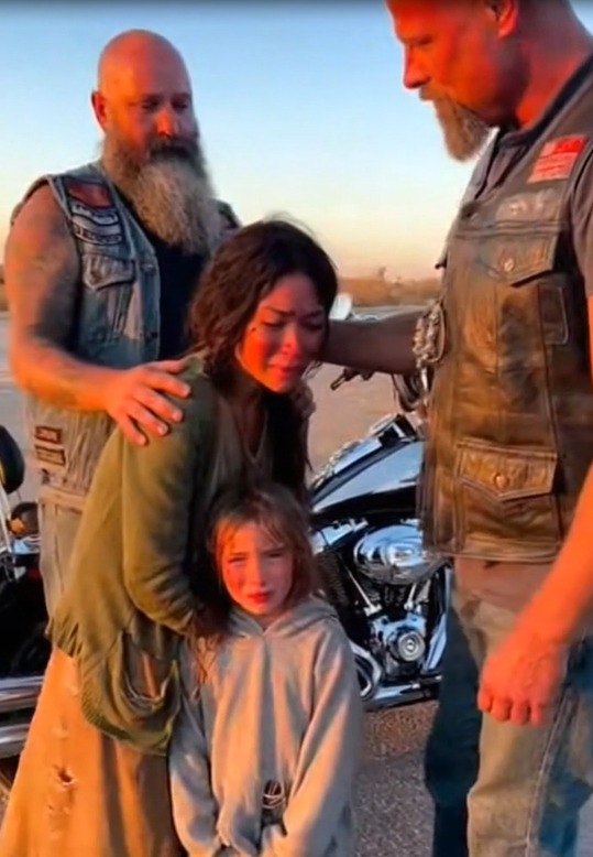One of the bikers noticed her right away. Jack, broad-shouldered and weathered by miles of road, felt something pull at him. Maybe it was instinct. Maybe it was memory. He knelt down, eye level with Lily, and asked a simple question.