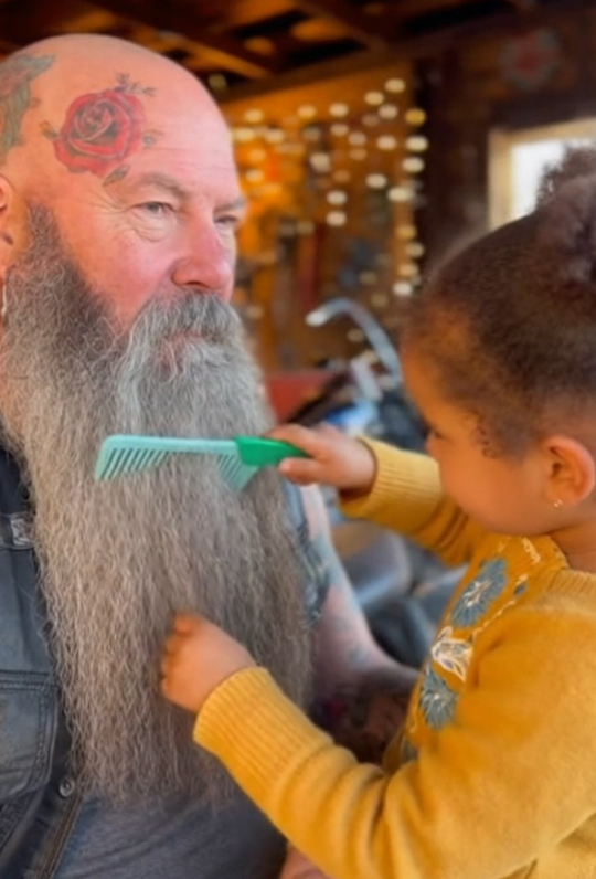 When the girl ran back to her family, the biker stayed seated a while longer. His hand rested on his beard, now neatly brushed, but that wasn’t what lingered.