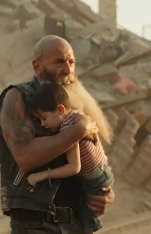 The boy wrapped his arms weakly around the biker’s neck.