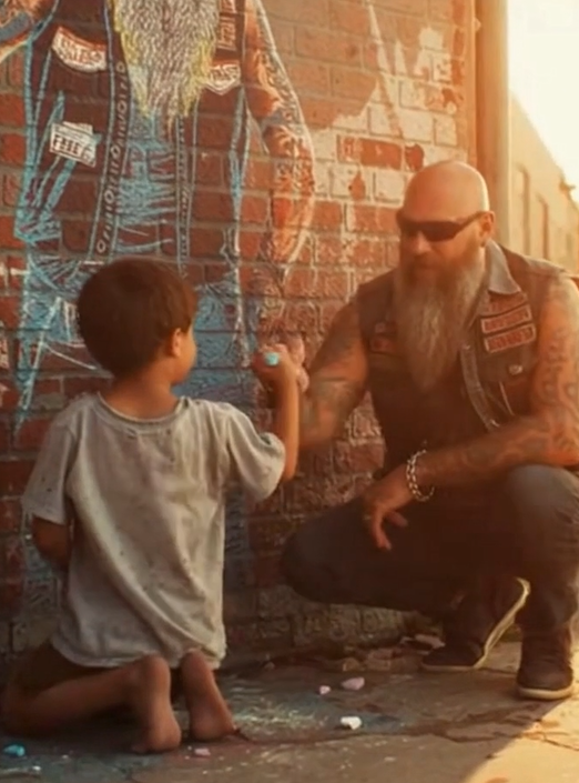 Finally, the biker removed his helmet. Gray touched his hair. His face was rough, shaped by miles and time. But his eyes softened as he studied the drawing.