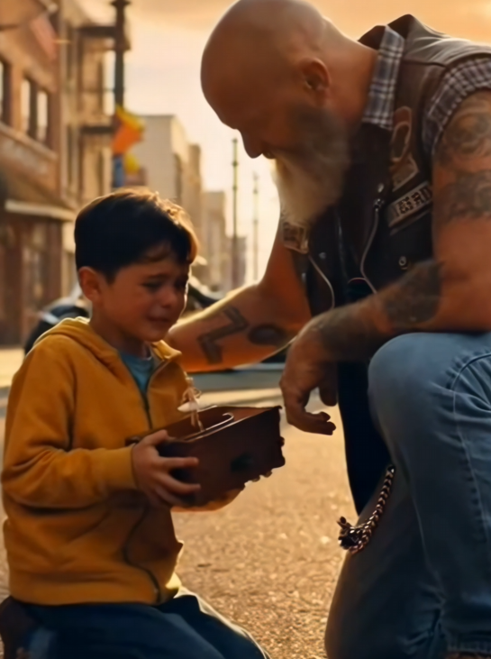 One of them, a gray-bearded rider named Jack, noticed the boy right away. He saw the quick glance at the bikes. The hesitation. The way the kid pulled the box a little closer to his chest.