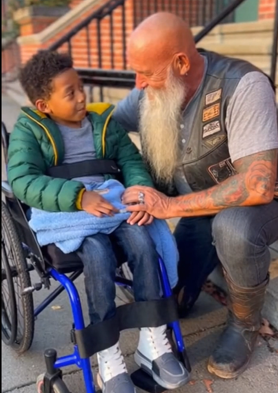 And that’s when one of the bikers noticed the boy.