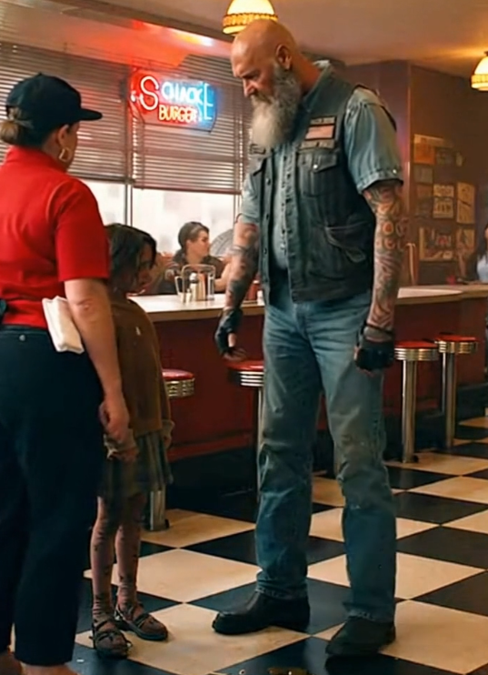 Only after the girl was settled did the biker stand up. His voice didn’t rise, but it carried weight. Calm. Steady. Impossible to dismiss.