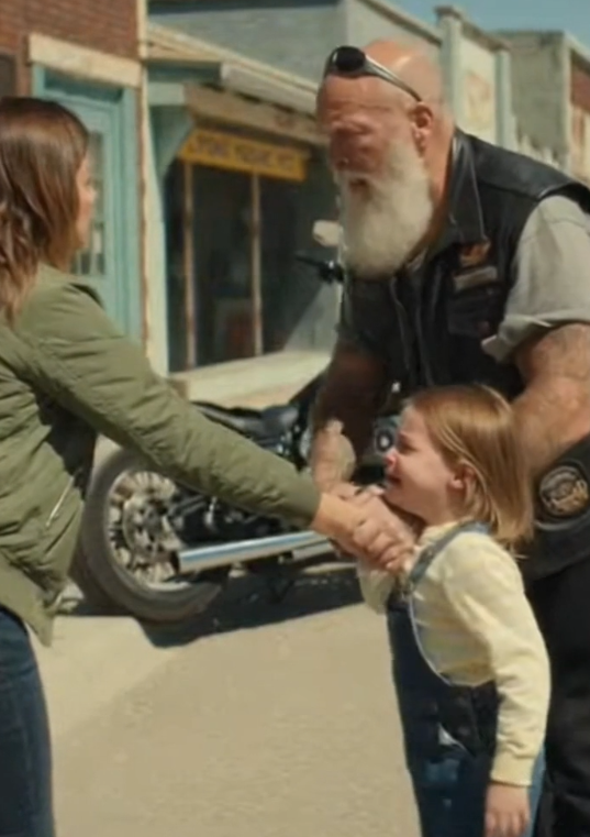 A pair of American bikers had just rolled in, engines easing down as they parked. They weren’t looking for trouble. They weren’t scanning the area for hero moments. They noticed something else first: body language. The stiff arm. The imbalance. The way the child’s feet struggled to keep pace.