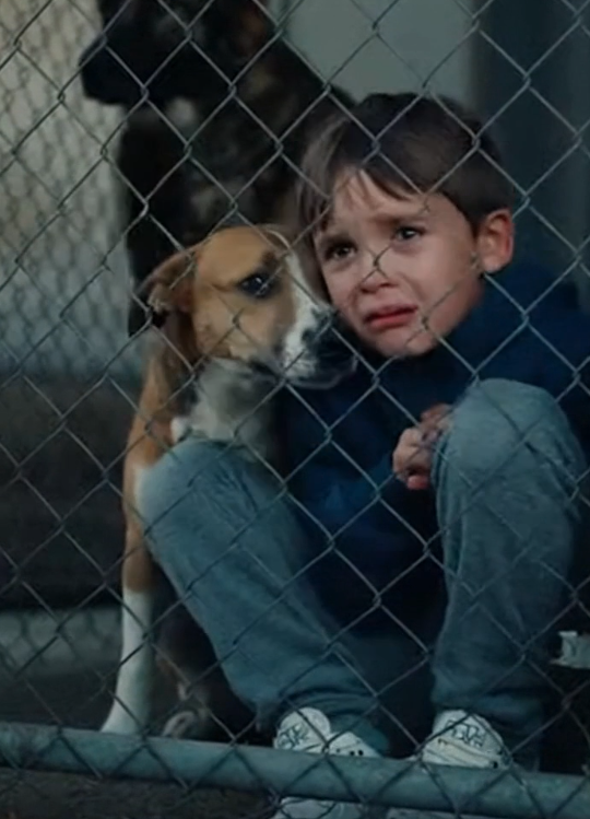 Inside a small enclosed pen near the back, a boy crouched low. He couldn’t have been more than eight years old. His arms were wrapped tightly around his knees, his body pulled inward like he was trying to disappear. A couple of dogs paced nearby, confused and anxious, barking now and then—not because they were dangerous, but because they were stressed and trapped too.