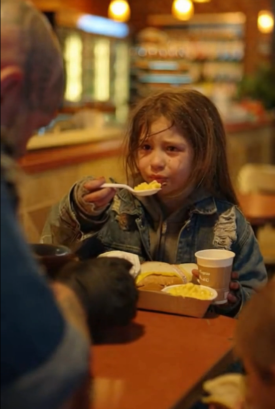 The food arrived quickly, steam rising from the plates like proof that this moment was real. Jake ate slowly at first, cautious, as if the food might disappear if he trusted it too much. Then he relaxed. Bite by bite, the tension left his shoulders.