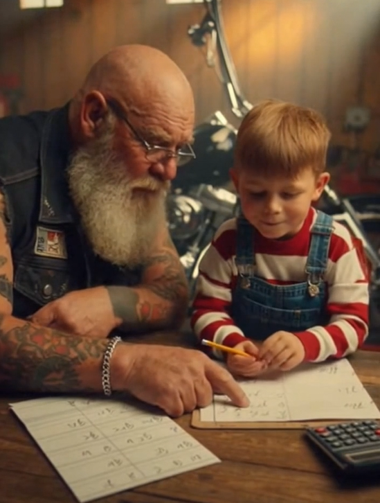 Later that evening, when the biker stood up to leave, the homework was finished—but something else had changed too. The boy felt lighter. Calmer. More confident.