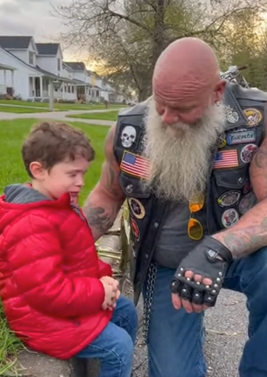 The biker stepped back, soaked from head to toe, making sure the boy was safely in his mother’s arms. He didn’t wait for praise. He didn’t explain himself.