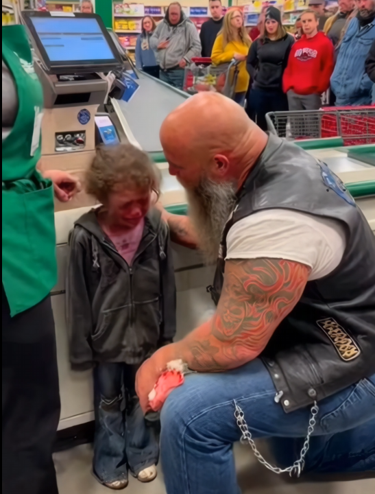 The biker didn’t argue right away. He didn’t posture. He looked at the girl. Really looked.