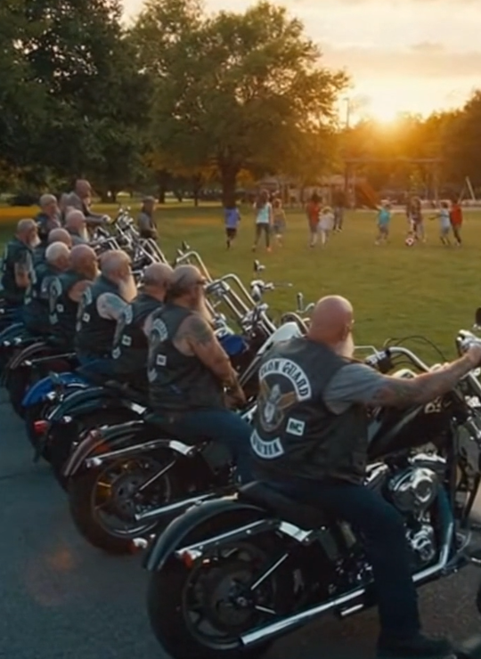 They didn’t arrive with sirens or speeches. There were no banners, no announcements, no need for attention. Just a line of motorcycles rolling into the parking lot at dawn, engines low, riders focused. Leather jackets worn soft by years of riding. Gloves scuffed from countless miles. Faces shaped by wind, weather, and time on the road.