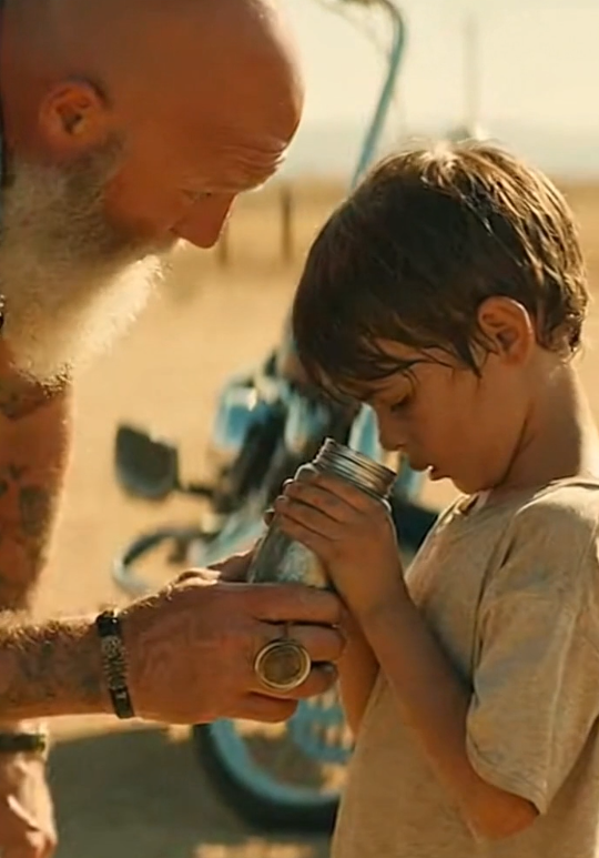 While he spoke, the other biker walked over to the boy and pulled a bottle of water from his saddlebag.