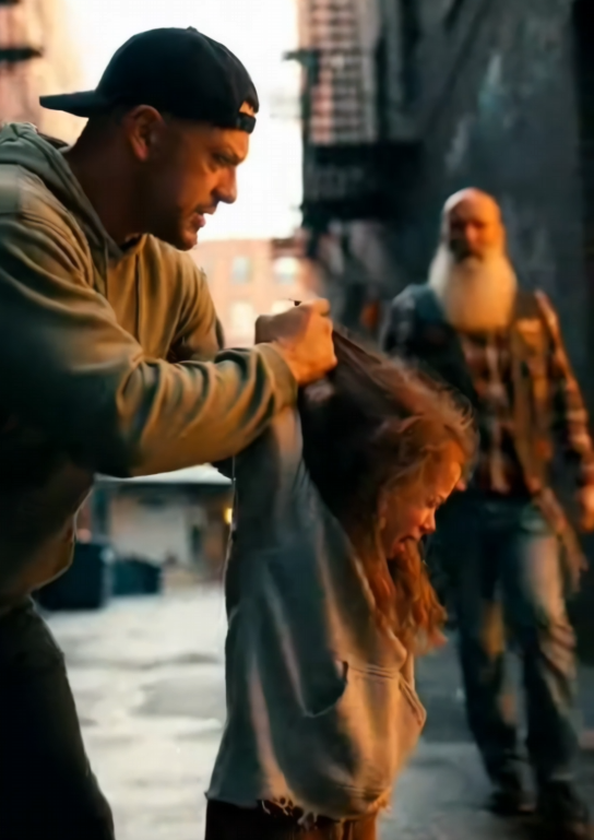 A hand grabbed her hair and yanked hard. “What are you staring at?” a voice snapped. The girl cried out, stumbling forward as shock hit before pain had time to catch up. Her breath came fast. Her eyes filled with confusion more than tears.