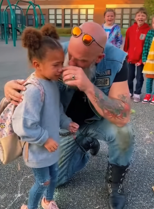 “Hey,” the biker said calmly, his voice low but firm. “What’s going on here?”